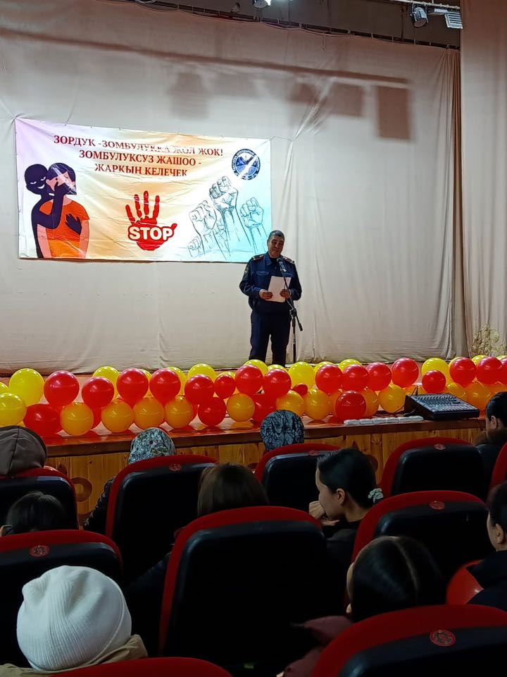 Аталган акциянын алкагында райондук мамлекеттик администрациянын, райондук прокуратуранын, райондук ички иштер бөлүмүнүн, райондук билим берүү бөлүмүнүн, Токтогул шаардык мэриясынын кызматкерлеринин, Токтогул райондук аялдар кеңешинин төрайымынын, Токтогул шаарынын имамынын жана Токтогул шаарындагы Токтогул, Ж.Бөкөнбаев, Т.Ормонбеков мектептеринин 8-11-класстарынын окуучу кыздарынын жана алардын ата-энелеринин катышуусунда райондук маданият үйүндө жыйын өттү.